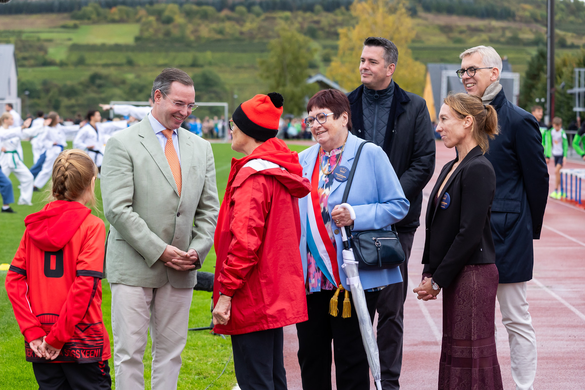(v.l.n.r.) S.K.H. der Großherzog ; Monique Hermes, Bürgermeisterin von Grevenmacher ; Lex Delles, Minister für Wirtschaft, KMU, Energie und Tourismus ; .) Anne Kremer, ehemalige Tennisspielerin ; Léon Gloden, Minister für innere Angelegenheiten