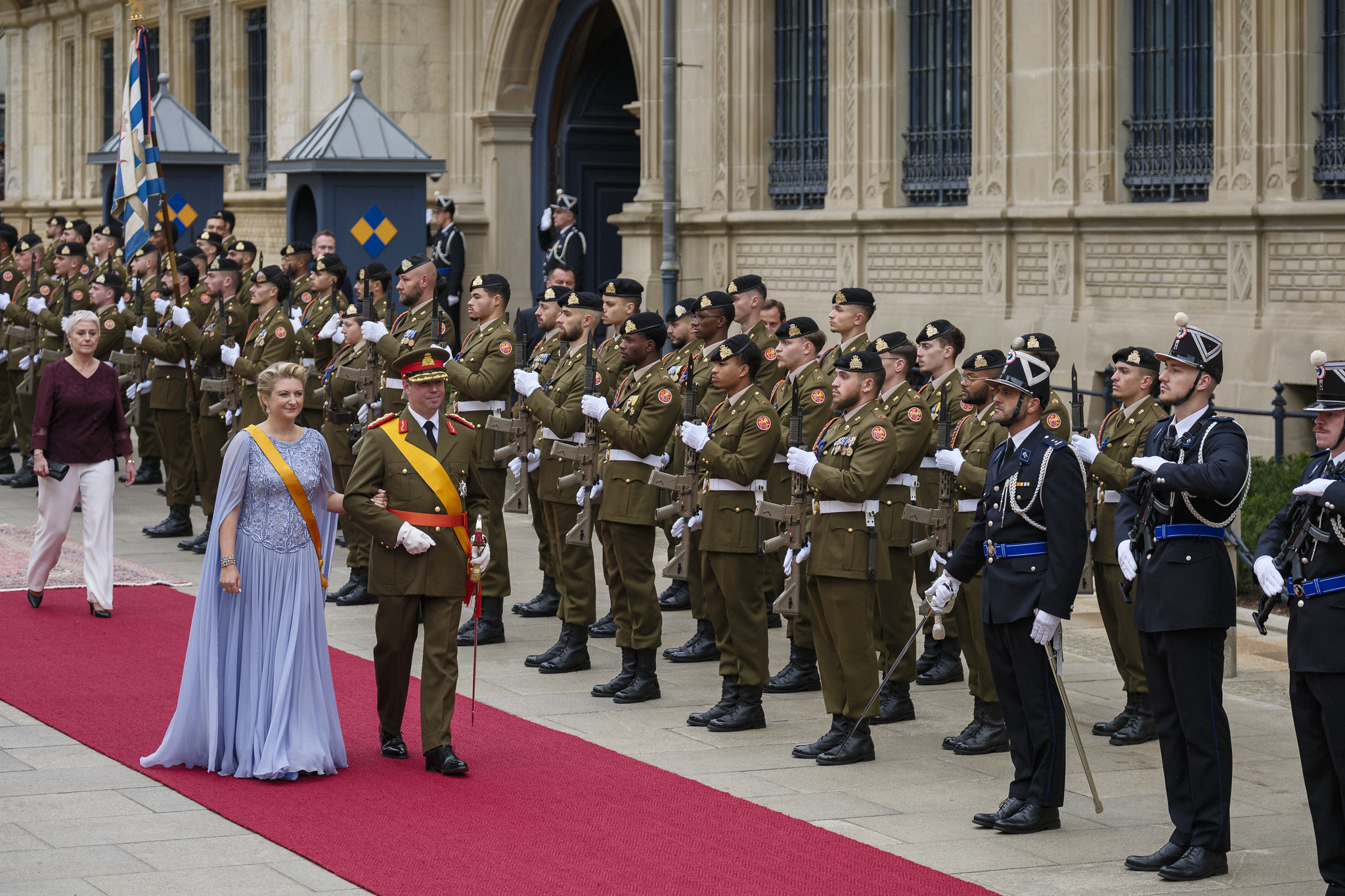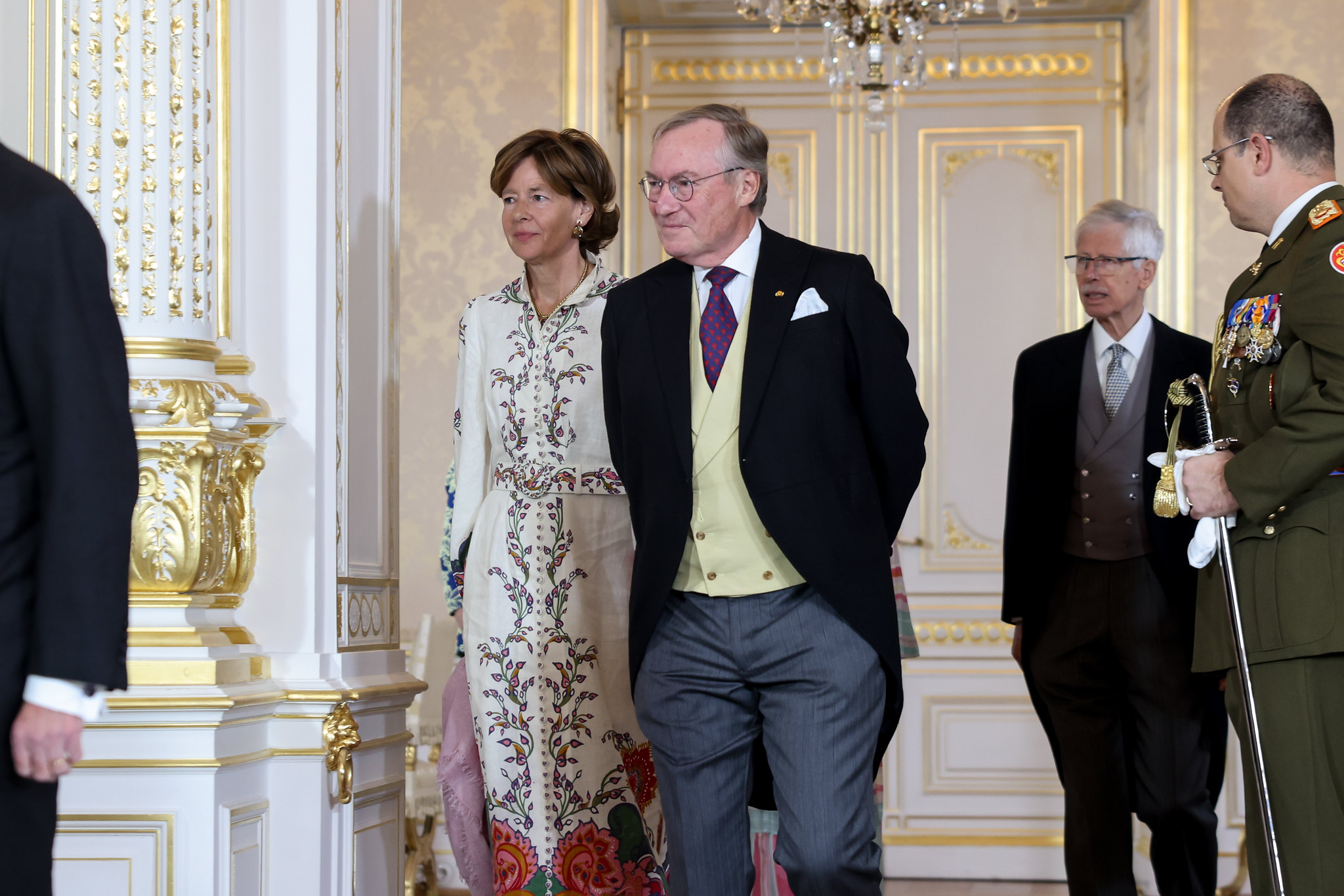 The day concludes with a gala dinner at the Grand Ducal Palace, attended by numerous guests, including the Dutch and Belgian Royal Families, the President of the French Republic, Emmanuel Macron, and his spouse, Brigitte Macron, as well as the President of the Federal Republic of Germany, Frank-Walter Steinmeier, and his spouse, Elke Büdenbender. The President of the Chamber of Deputies, the Prime Minister, and the Deputy Prime Minister, accompanied by their spouses are also present.