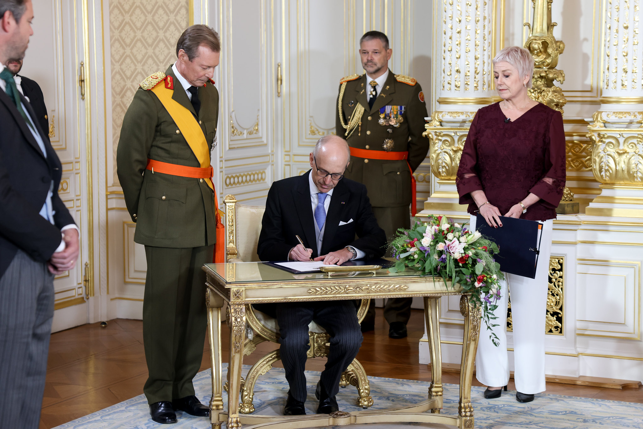 Bei dëser Zeremonie ënnerzeechent de Grand-Duc Henri de groussherzoglechen Arrêté iwwert d'Ofdankung vum Grand-Duc vu Lëtzebuerg, gefollegt vun der Ënnerschrëft vum Premierminister. Duerno hält de Premierminister eng Ried.
