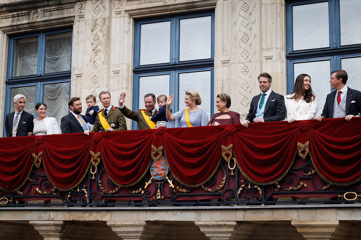 No der Zeremonie an der Chamber geet déi groussherzoglech Famill, zesumme mat den nationalen an internationalen Dignitären, zeréck an de Palais. Déi nei groussherzoglech Koppel, a Begleedung vun hire Kanner, dem Prënz Charles an dem Prënz François, kommen op de Balcon fir d'Bevëlkerung ze begréissen. Duerno kommen de Grand-Duc Henri an d'Grande-Duchesse Maria Teresa, esou wéi och déi belsch an hollännesch Kinneksfamilljen dobäi.