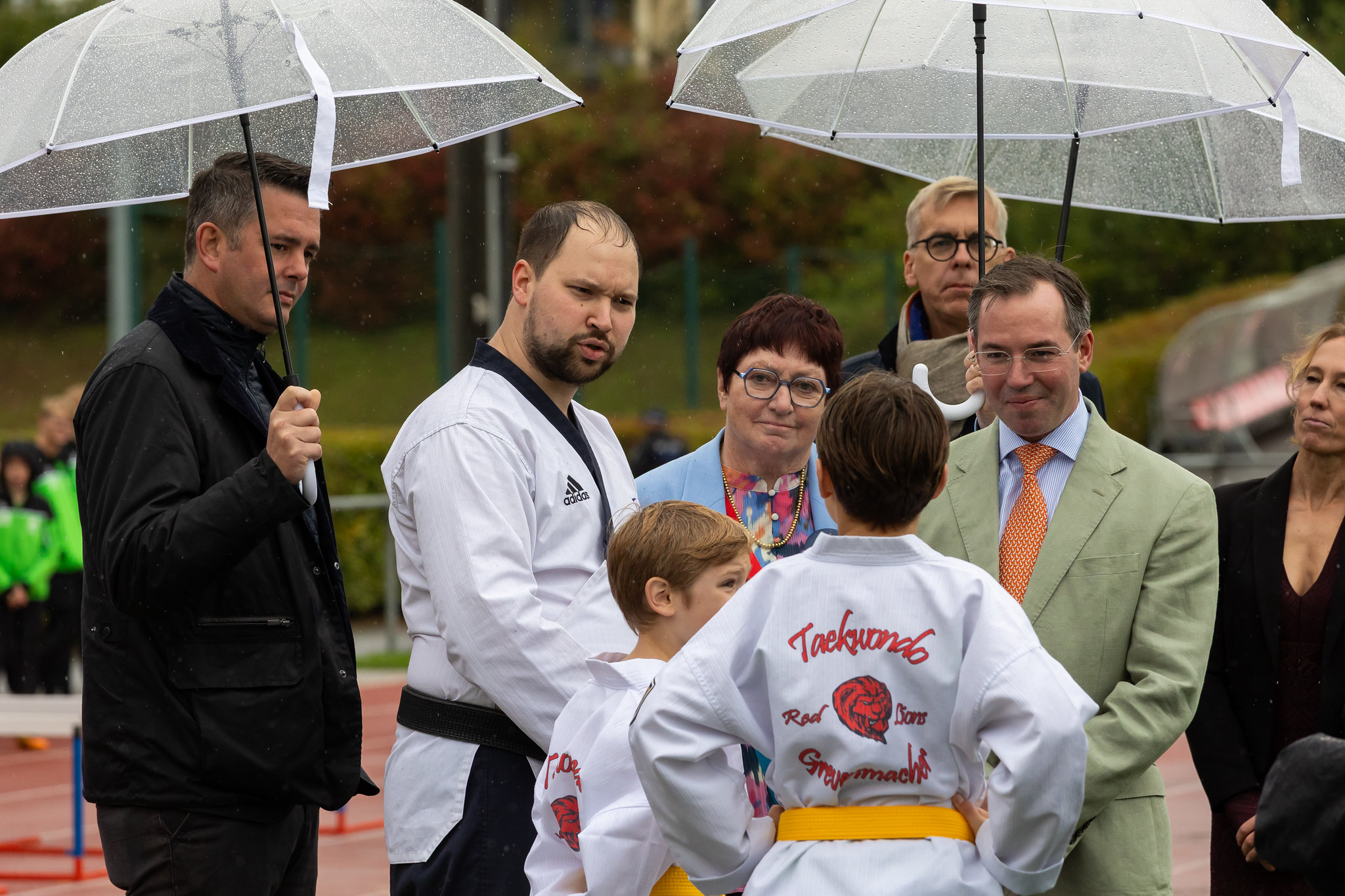 Visitt vum Grand-Duc vum Stadion "Op Flohr", a Presenz vum Minister fir Wirtschaft, PME, Energie an Tourismus, Lex Delles, a vum Inneminister, Léon Gloden. D'Thema vun der Visitt ass: "Sport als Mëttel fir d'Fërderung vum Benevolat" Fraen a Männer, déi sech am Benevolat, souwéi an der Fërderung vum Sport a Sportler engagéieren, stinn am Mëttelpunkt.